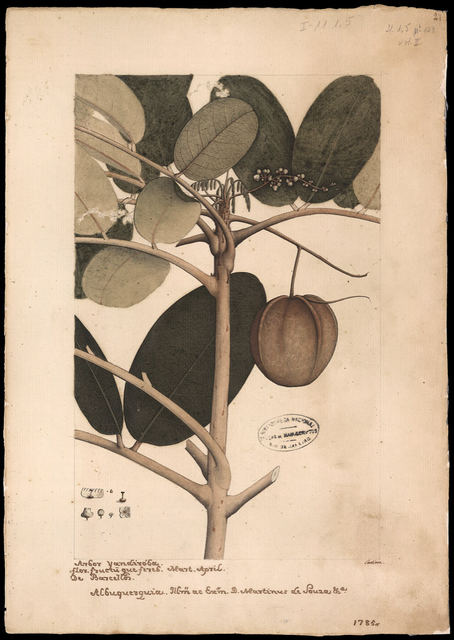 Las flores son pequeñas, de coloración blanquecina o amarillenta, que se agrupan en racimos o panículas, apareciendo generalmente en épocas de transición estacional. El fruto es una nuez de cuatro lados, similar en apariencia a una castaña, que contiene semillas ricas en un aceite de color amarillo claro y sabor extremadamente amargo. El sistema radicular es profundo y fuerte, lo que le permite anclarse firmemente en los suelos tropicales.